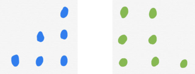 In preschool and kindergarten, children focus on exploring number relationships that involve counting. For example, if we add one more to a group of four, we have five (because we can count four then five. These counting strategies can be connected to addition and subtraction since we can count up by one or two for addition (or back by one or two for subtraction). Subitizing is another skill that students practice by looking at a group of dots and “seeing” them in different ways. For example, we might see five as two dots and three dots while someone else sees one dot and four dots. Which addition and subtraction facts do you think of when you see these dot patterns?