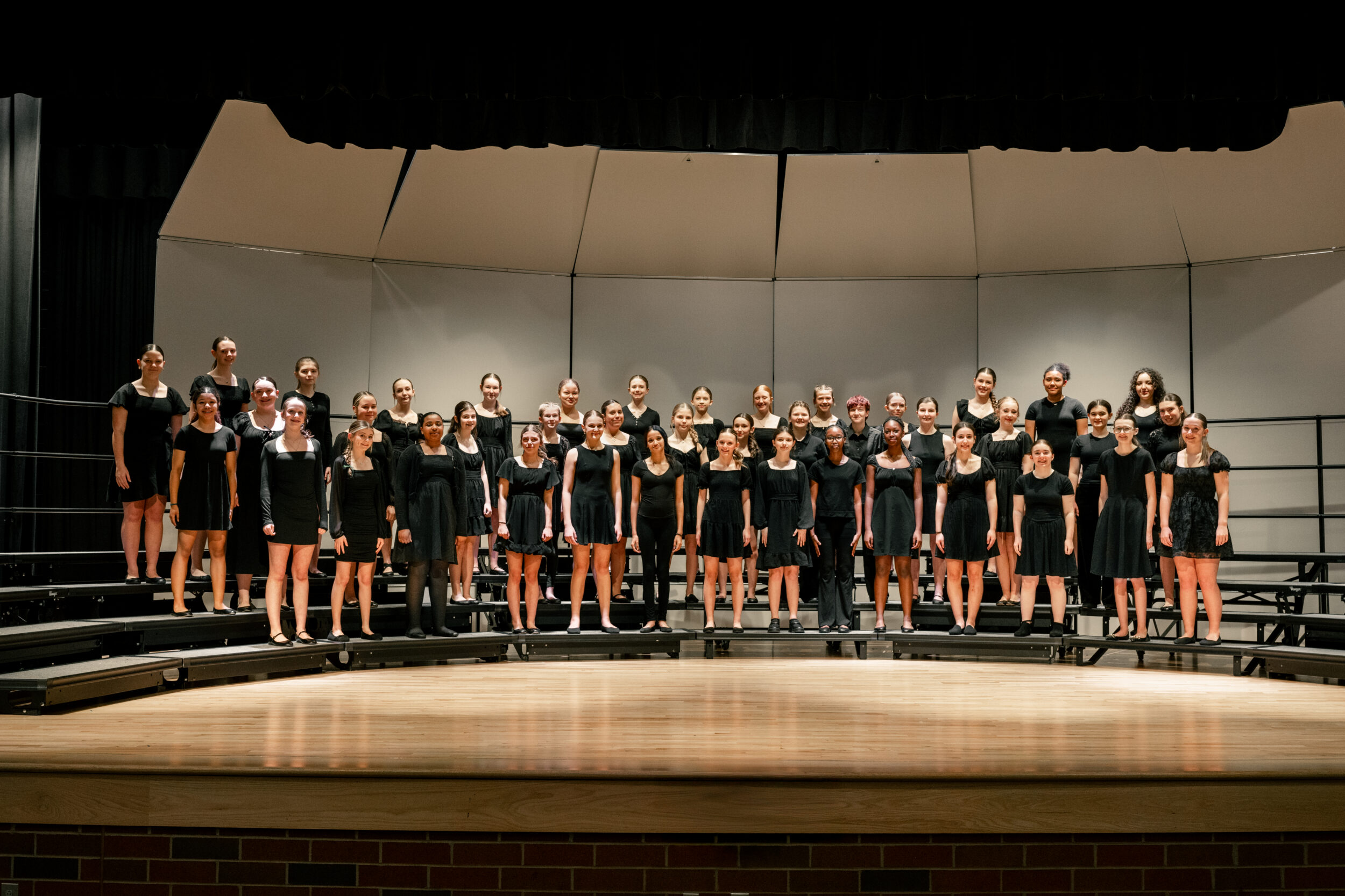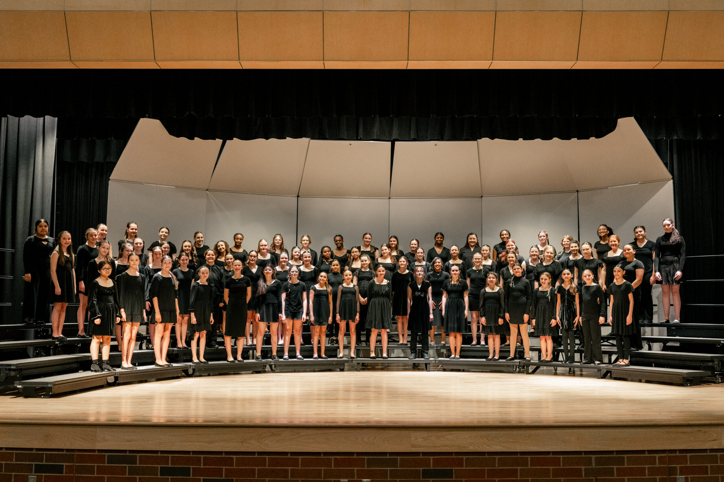 Many students are returning members. Literature is chosen from the OMEA Class A level and consists of SA, SSA, and SSAA voicing. The 8th Grade Treble Choir is divided into two sections that meet every day during the school day.